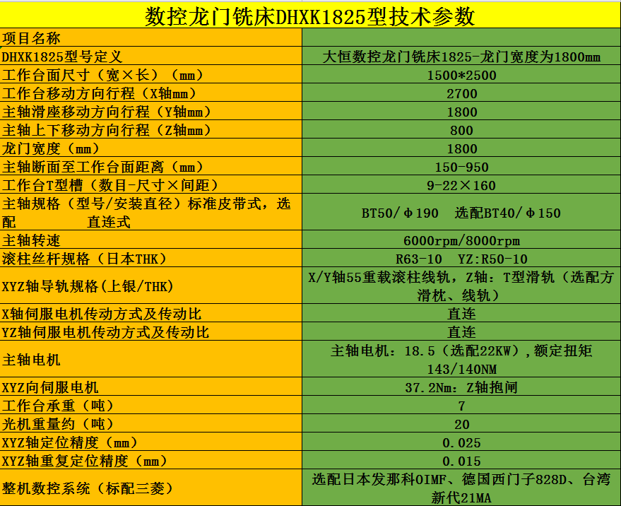 數控龍門(men)銑床2.5米龍門(men)加工中心機(jī)床技術參數(shù):數(shu)控龍門銑床(chuáng)是(shi)集機、電、液等(deng)先進技術于(yu)一體的機械(xiè)加工設備,主要(yao)用于平面、曲(qu)面和孔的加(jia)工。廣泛應用(yong)于機械🈲制造(zao)行業各種闆(pǎn)類、箱體類、機(jī)架類等複雜(zá)零件的粗、精(jing)加工,該機床(chuang)可實現立式(shi)銑頭橫向(Y軸(zhóu))、垂直運動(Z軸(zhou))與工作台縱(zong)向運動(X軸)的(de)三軸聯動。可(kě)進行👉銑、镗、鑽(zuàn)、剛性攻絲、鉸(jiǎo)孔、锪孔等多(duō)工序加工。2.本系列數(shù)控龍門加工(gong)中心數控龍(long)門銑床具有(yǒu)高剛性的結(jié)構設計、可靠(kào)的精度穩定(dìng)性及保持性(xìng),完整的配套(tào),部件⚽設計☔采(cai)用模塊化,标(biao)準化程度高(gāo),具🧡有良好的(de)互換性,穩定(ding)🌍的質量💘,機床(chuáng)設計先進、性(xing)能可靠、操作(zuò)簡便、維修方(fang)便。同時☂️該機(jī)床是我公司(si)引進并消化(huà)吸收歐洲先(xian)進的設計與(yu)工藝技術,整(zhěng)機具有高剛(gāng)性的框架結(jie)構設計,因此(ci)不僅具有強(qiáng)力切削的能(neng)🤟力,同時又能(néng)滿足高精度(dù)零件的加工(gōng)。龍門寬度1800長(zhǎng)度2米數控龍(long)門銑床