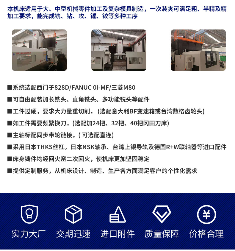 | 軸數(shù) | 三軸 | 數控(kòng)系統 | 可選(xuǎn)配,西門子(zǐ)/SIEMENS,三菱/MITSUBISHI,發那(na)科/FANUC,新代/SYNTEC |