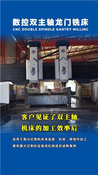 我公(gong)司推出(chū)的雙主(zhu)軸龍門(men)機床深(shēn)受客戶(hù)認可!客(ke)🏃♀️戶🏒采用(yong)我公司(si)專為激(jī)光切割(gē)設備制(zhi)造行業(ye)所生😍産(chan)的數控(kong)雙主軸(zhou)龍🔱門銑(xi)床,加工(gōng)同一産(chǎn)品程序(xù)時間48.8小(xiǎo)時,且不(bu)需要二(èr)次裝夾(jiá),實現用(yòng)時僅40小(xiǎo)時加工(gōng)效率提(ti)升高達(da)38%。實現高(gao)效加工(gong)!